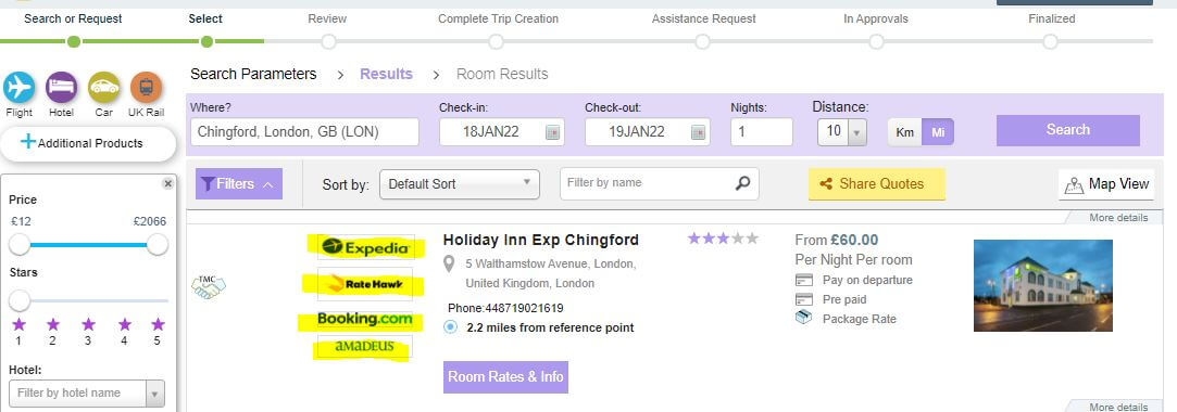 Highlight and prioritise preferred hotels and set policy controls and price caps to control spend. Force justifications and approval if required.