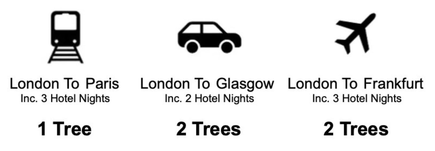 We offer access to the Trees4Travel technology which means for each trip taken we use the Trees4Travel calculator to work out how many trees need to be planted to offset the carbon emissions generated by the trip.