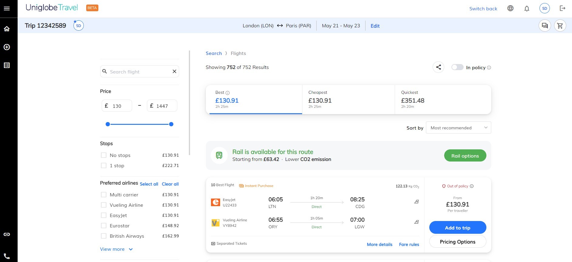 Our booking tool gives you visibility of the carbon emissions from the different trip options which means you can elect to travel in a greener way where possible. It also means you have the necessary data to buy carbon offsets through the many carbon offsetting programmes that exist.