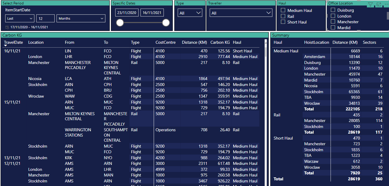 For our part we have put a “green glow” on corporate travel , providing data to give you visibility of your companies carbon output.